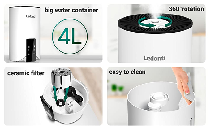 With warm and cool mist Ledonti HLD-421 humidifiers for baby, you will forget about skin dryness, itchiness and discomfort.