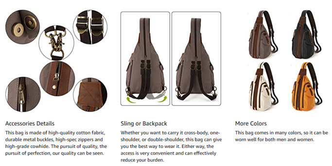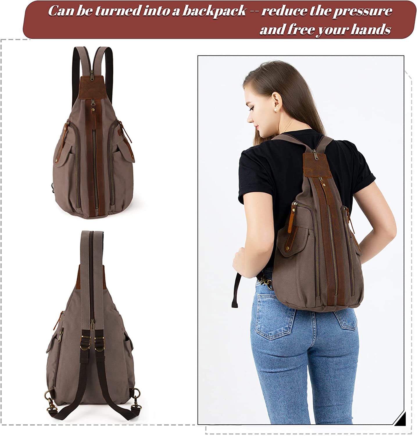 - This sling bag features a convertible and adjustable zipper strap, which can be used as a backpack, chest bag or crossbody bag, which is versatile and easy to change.