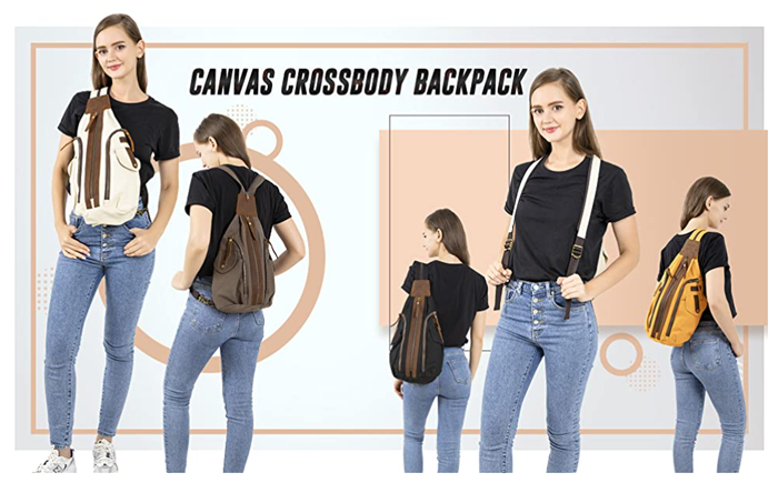 This canvas shoulder bag can be worn in multiple ways. Unzip the adjustable straps to use as a backpack, or zip up to wear as a crossbody bag, shoulder bag, or even a chest bag. Flexible switching helps to reduce the pressure on one shoulder, making the journey more enjoyable and relaxing. Charming and durable.