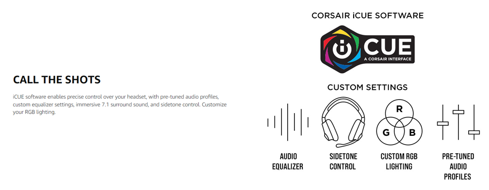 Immerse yourself in the action with the Corsair void RGB Elite wireless, with custom-tuned 50mm neodymium audio drivers delivering 7.1 surround sound on the PC. Microfiber mesh fabric and memory foam ear pads provide lasting comfort. Connect to your PC or PS4 with a low-latency 2.4GHz wireless connection, with a range of up to 40ft and all-day battery life up to 16 hours. An omnidirectional microphone with LED mute indicator ensures that you're heard with exceptional vocal clarity. The void RGB Elite's distinctive design and durable construction are complemented by fully customizable RGB lighting on each ear cup. Powerful Corsair iCUE software ties everything together, enabling full control over equalizer settings, 7.1 surround sound, RGB lighting and more.