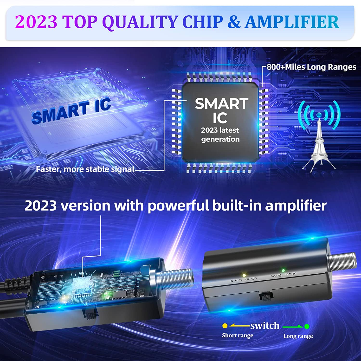 • ?▷【UPGRADED TO 800+ MILE LONG RANGE】- TV antenna for smart tv, equip with 2023 MOST POWERFUL built-in ic chip & HIGH-QUALITY signal amplifier, ensure the stability of signal reception,access to more free channels . Indoor/Outdoor tv antenna has high gain, bring clear pictures, low noise and access to most TV signals.Transfer 8k 4k combination of UHR and HDR video content. You deserved the 2023 Best & Oversized ANTENNA which offers more longer ranges on the market and lndustry-leading Power!