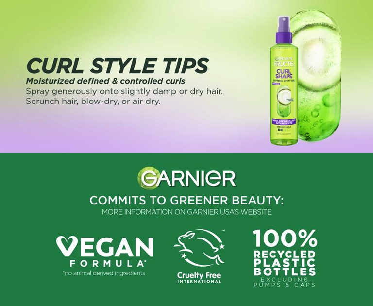 • Curly Hair Styling Products: Shape, define, and refresh your curls with a little help from Garnier Fructis; Our specially formulated curly hair products, hydrate, condition, and smooth frizz for nourished, shining curls