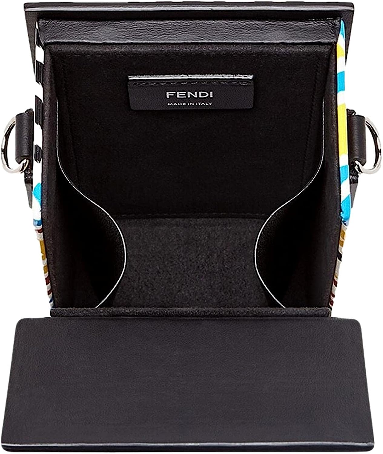 The Fendi Vertigo multicolor print and boxy design style will have heads turning your way. Crafted in smooth leather and featuring a leather shoulder strap and the Fendi Roma logo across the front.