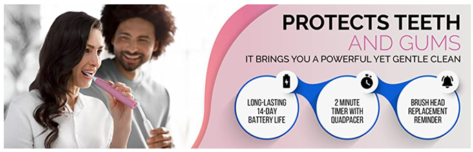 Sonic Electric Toothbrush For Adults - Optimize your brushing with SmarTimer and QuadPacer - 2 minute SmarTimer and 30-second QuadPacer guide you to brush for the recommended time in all areas of your mouth to ensure a complete clean.