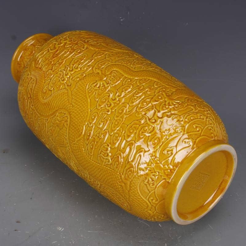 ZHYH Antique Yellow Glaze Embossed Home Decoration Porcelain Flower Vase Collection Vase
