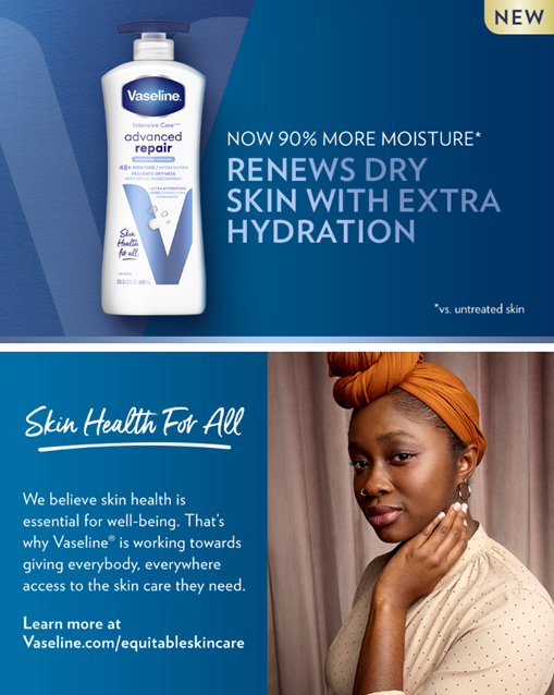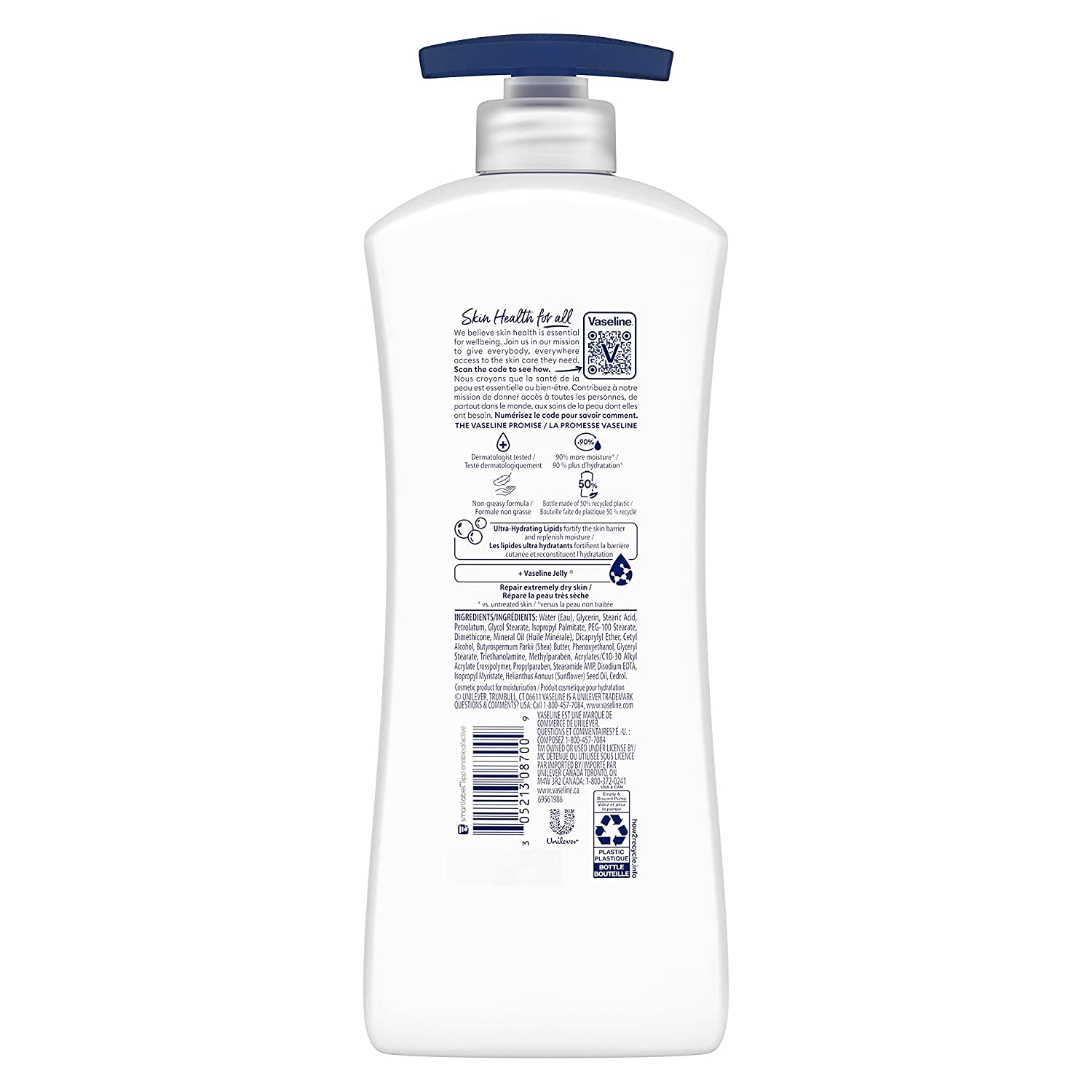 Vaseline Intensive Care Advanced Repair Lotion, with Ultra Hydrating Lipids and Vaseline Jelly, moisturizes and repairs extremely dry skin. This body moisturizer is clinically tested to provide 90% more moisture (vs. untreated skin).