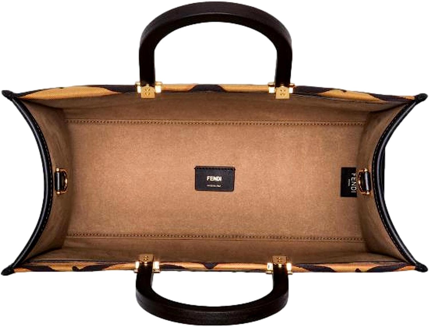 This Fendi Sunshine Shopper Bag combines classic lines with a bold tiger print in the canvas shopper tote. The designer was inspired by the Chinese Year of the Tiger celebrations and the bold black and yellow colors make the print pop.