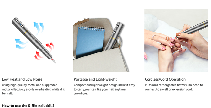 • Easy to Use and Portable: This nail drill does all the work with just 2 buttons.Compact and lightweight design make it easy to carry,your can file your nail anytime anywhere.