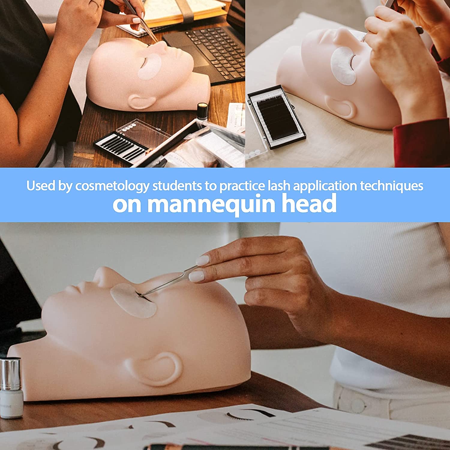 Wide range of applications: This kit is suitable for a wide range of applications, whether you are a beginner or a professional and the holes behind the head of a mannequin can be easily secured to mannequin holders or fixtures. Suitable for training makeup, eyelash extension training, face painting, massage, Skincare Essential Oil, and so on.