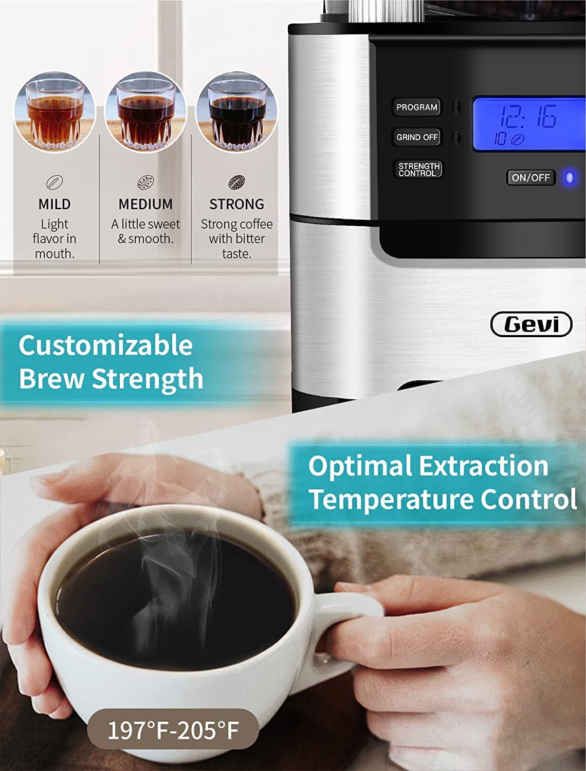 - ☕ 【OPTIMUM FLAVOR THROUGH BREWING SETTINGS】: With 3 strength control settings and 8 coffee grind control grade, create your desired drink. A conical burr grinder lets you choose from 8 grade, from coarse to fine, for the best results by bean type and desired drink. Three settings deliver coffee just the way you like it, with a choice of strong, medium, or mild for flavor customized to your taste. Press the "GRIND OFF" button if you need the coffee machine to stop grinding coffee powder.