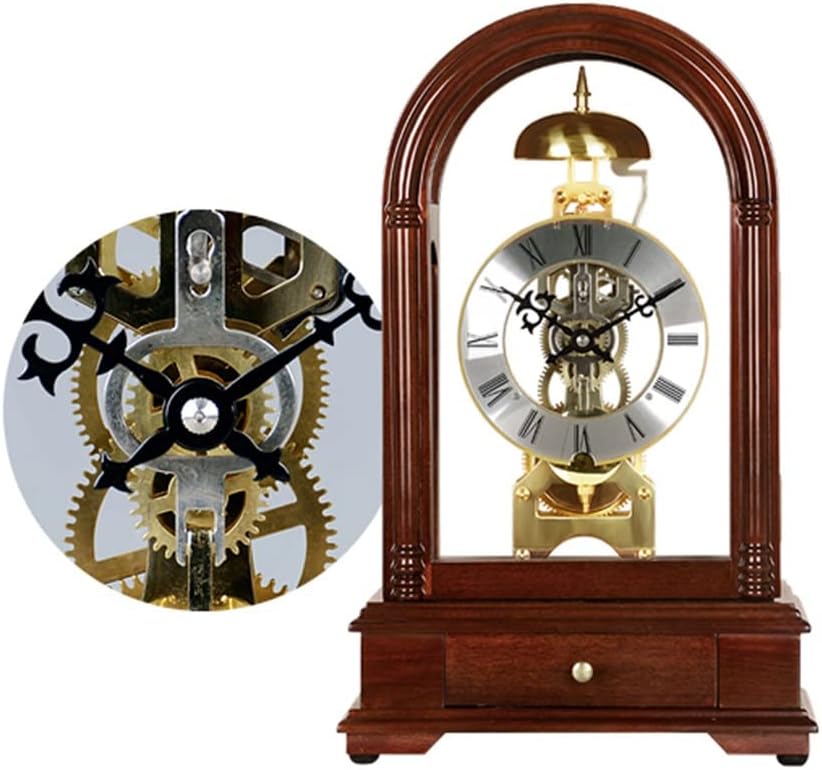 TREXD European Retro Mechanical Desk Clock Living Room Clock Ornaments Antique Solid Wood Desk Clock Home Clock Decoration