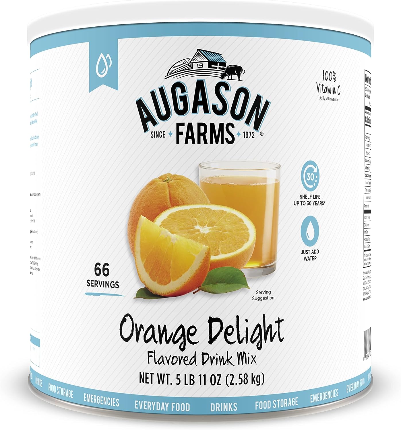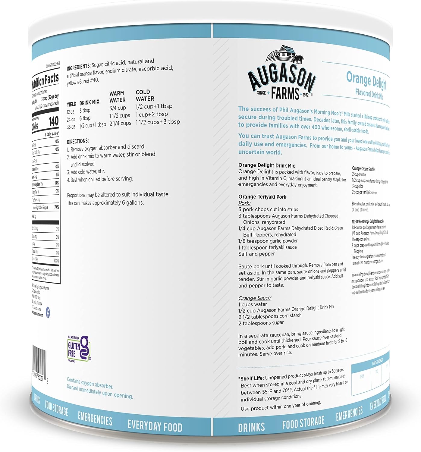 Augason Farms Orange Delight Drink Mix 5 lb. 11 oz& 5-90620 Country Fresh 100% Real Instant Nonfat Dry Milk, 1 lb, 13 oz.