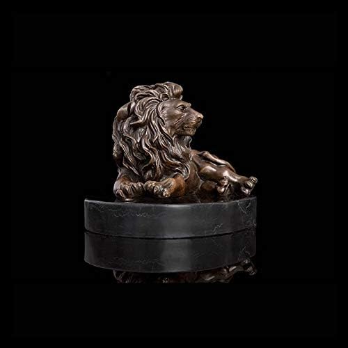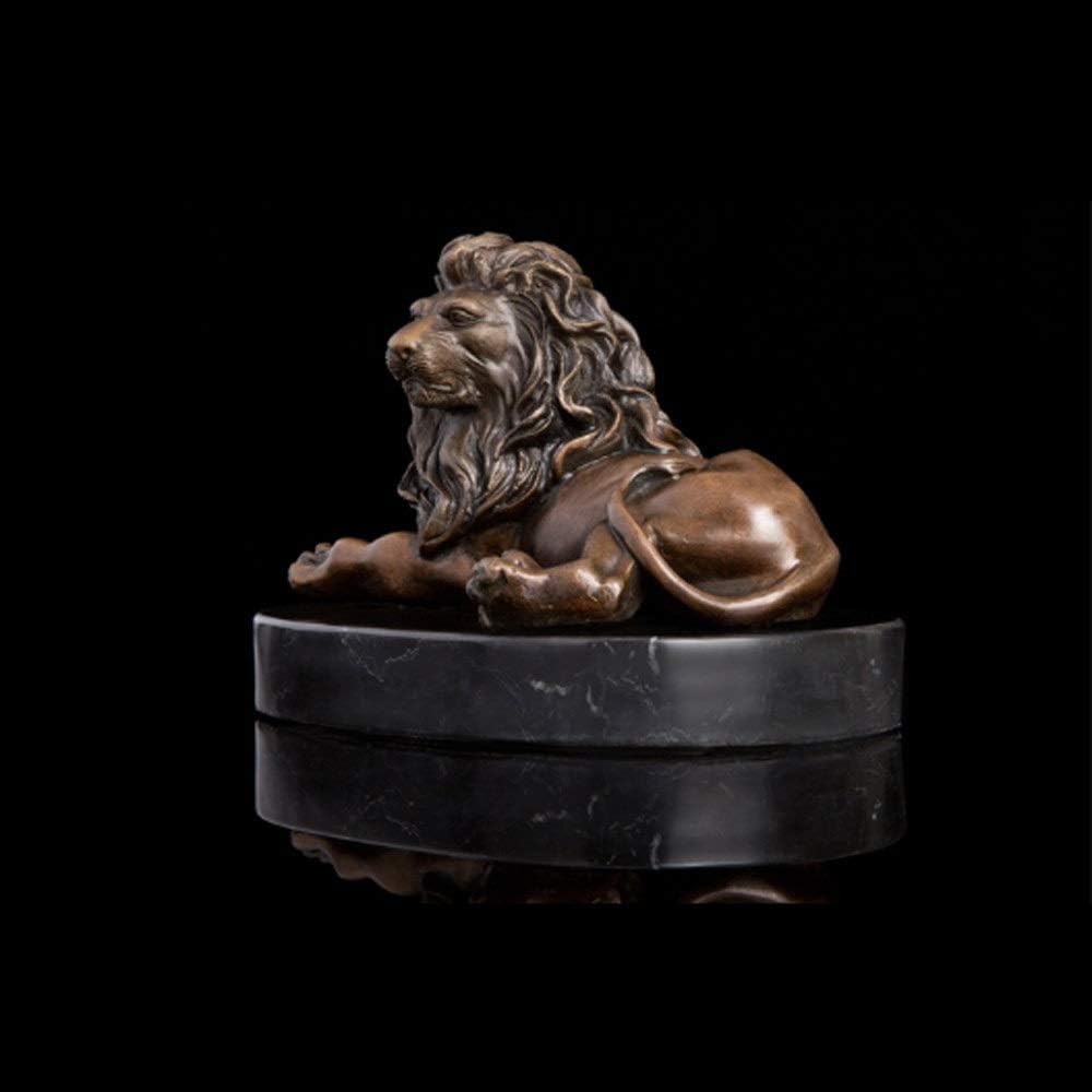 MJWDP Bronze Sculpture Lying Lion Statue Figurine Antique Wildlife Metal Art for Home Decoration