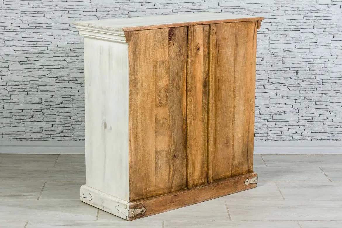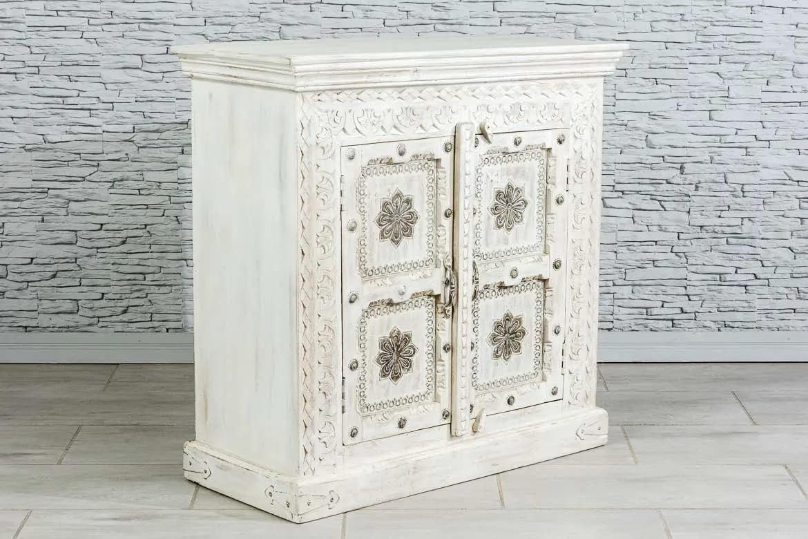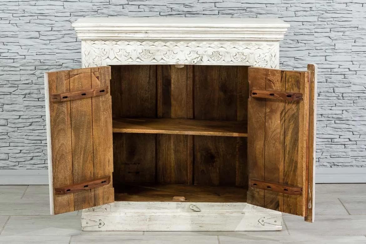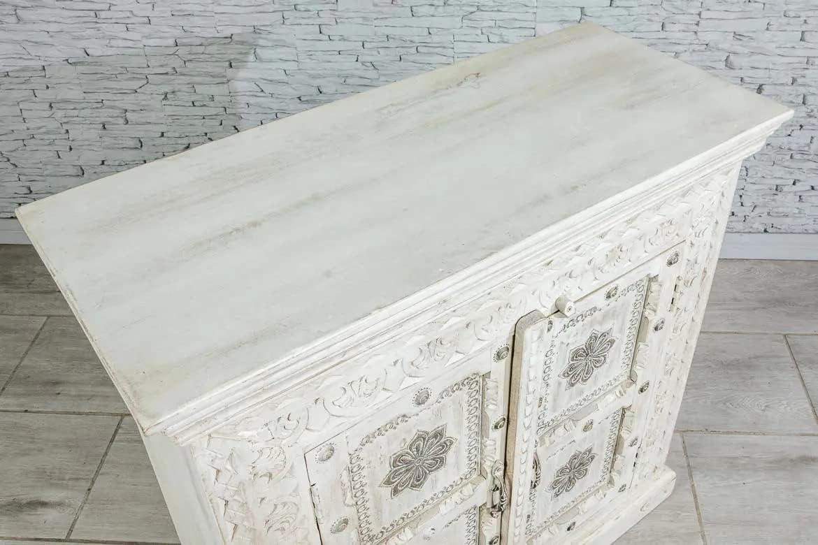 Antique Indian Brass Work Hand Carved Solid Wooden Sideboard White Mango Wood Indian Arched Sideboard Cabinet Storage Units Indian Solid Wood,Living Room Bedroom Furniture,Modern Sideboard
