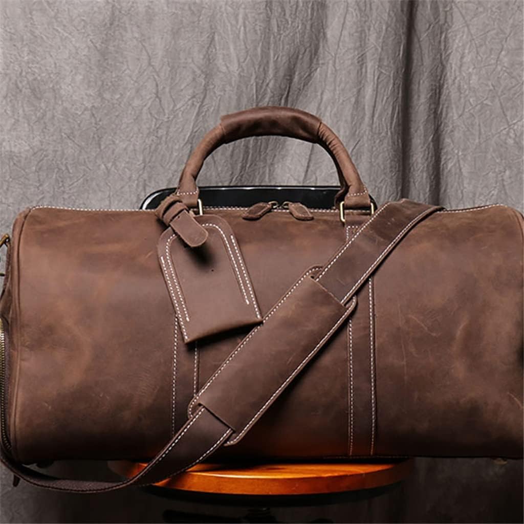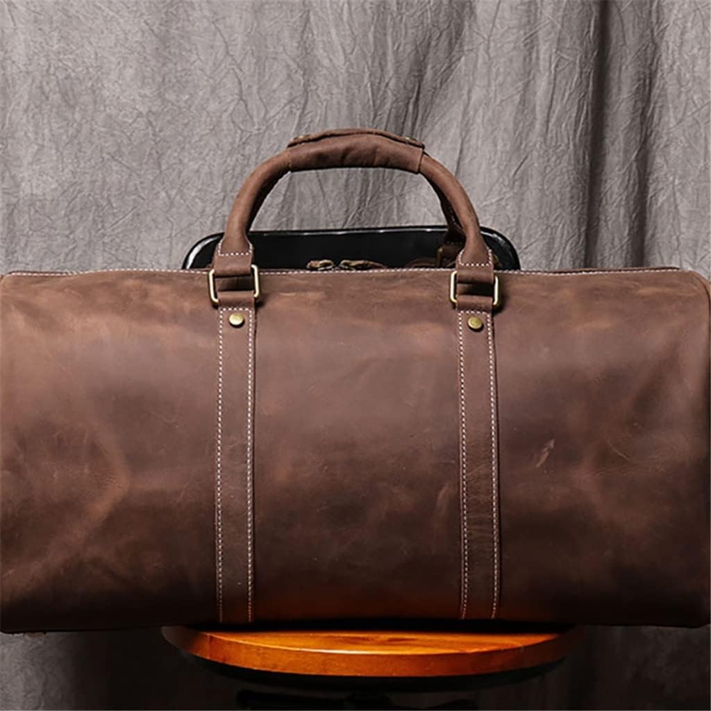 FEER Men's Genuine Leather Travel Bag Vintage Large Capacity Single Shoulder Messenger Hand Luggage Bag for 15 Inch Laptop