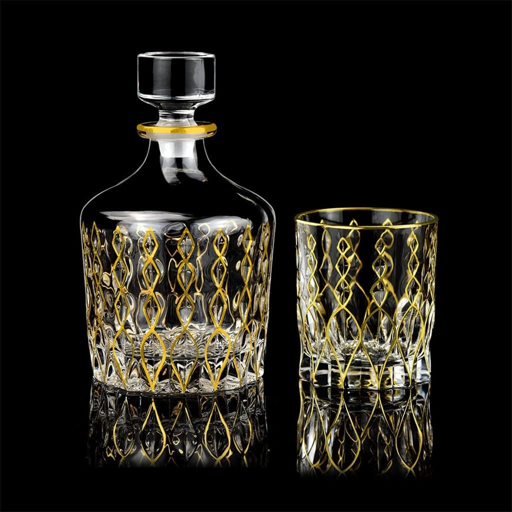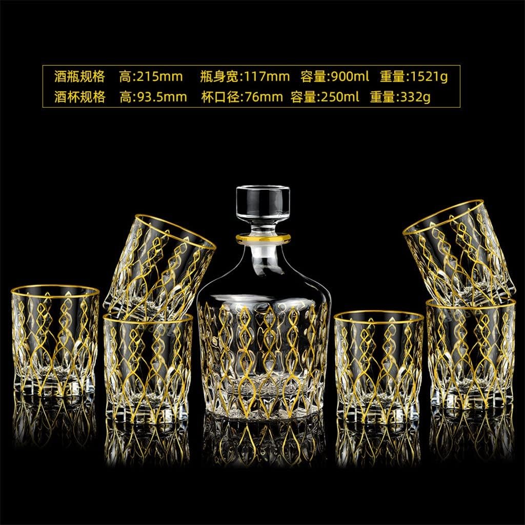 XXXDXDP Hand-painted Gold Whisky Set 7-piece Antique Decanter Set For Household Use Wine Glass Set